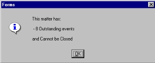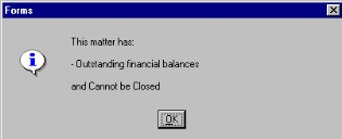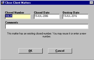removed from the file and the user can return to the Close Client Matters