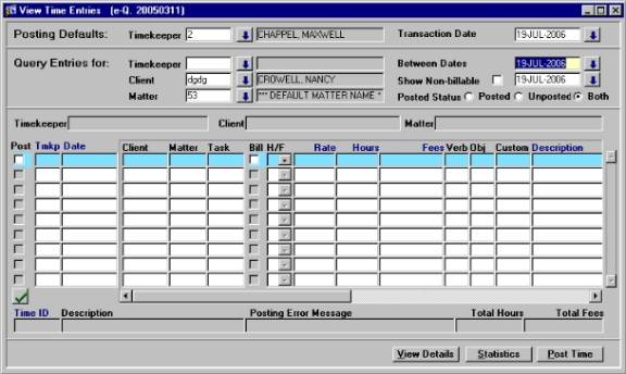 the query and return all outstanding posted time records for this Matter