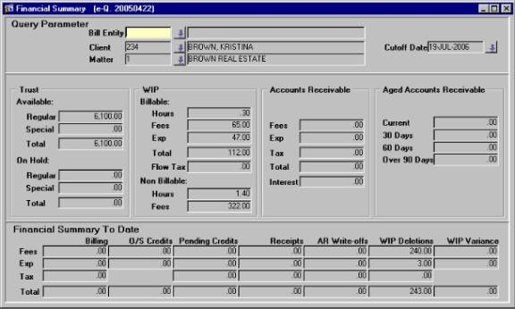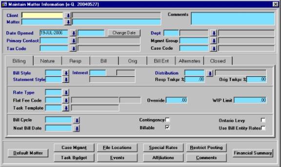 the Client No and Matter No, then press [F8] query back