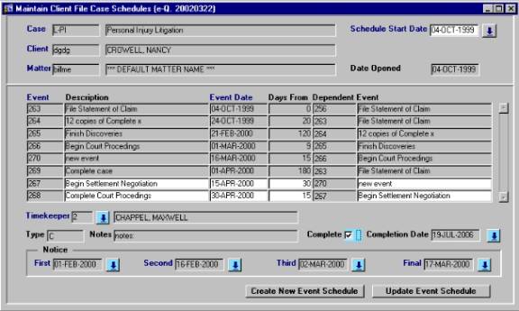 Case Schedules screen will be launched, as seen in Figure 12