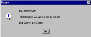 a Matter has property in trust with the firm, the user will be alerted with