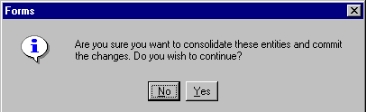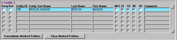 Once all selections are made, the user must then click the Consolidate Marked Entities button (pressing Save or [F10] will NOT work here)