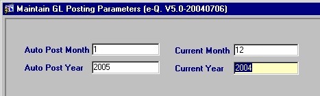 Maintenance/System Admin/Parameters/Maintain GL Posting Parameters
