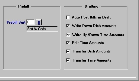 Sort The way in which Prebills are sorted (i.e. by Code, by Description). A selection may be made from the List of Values provided.