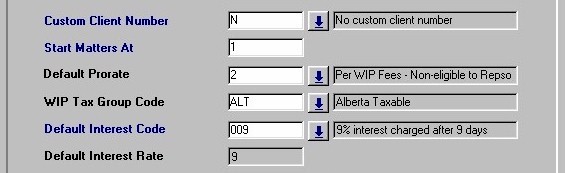 Matters At Default Prorate WIP Tax Group Code Default Interest Code, Default Interest Rate |